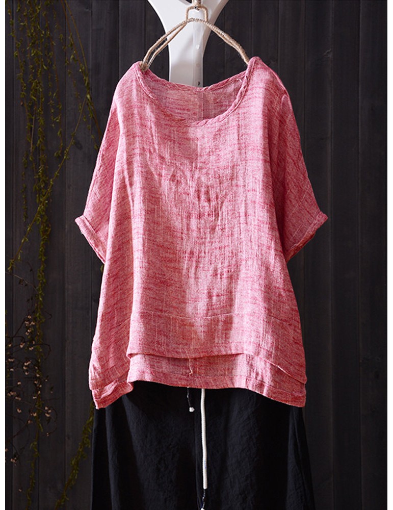 Vintage Pure Color O-neck Half Sleeve Blouses